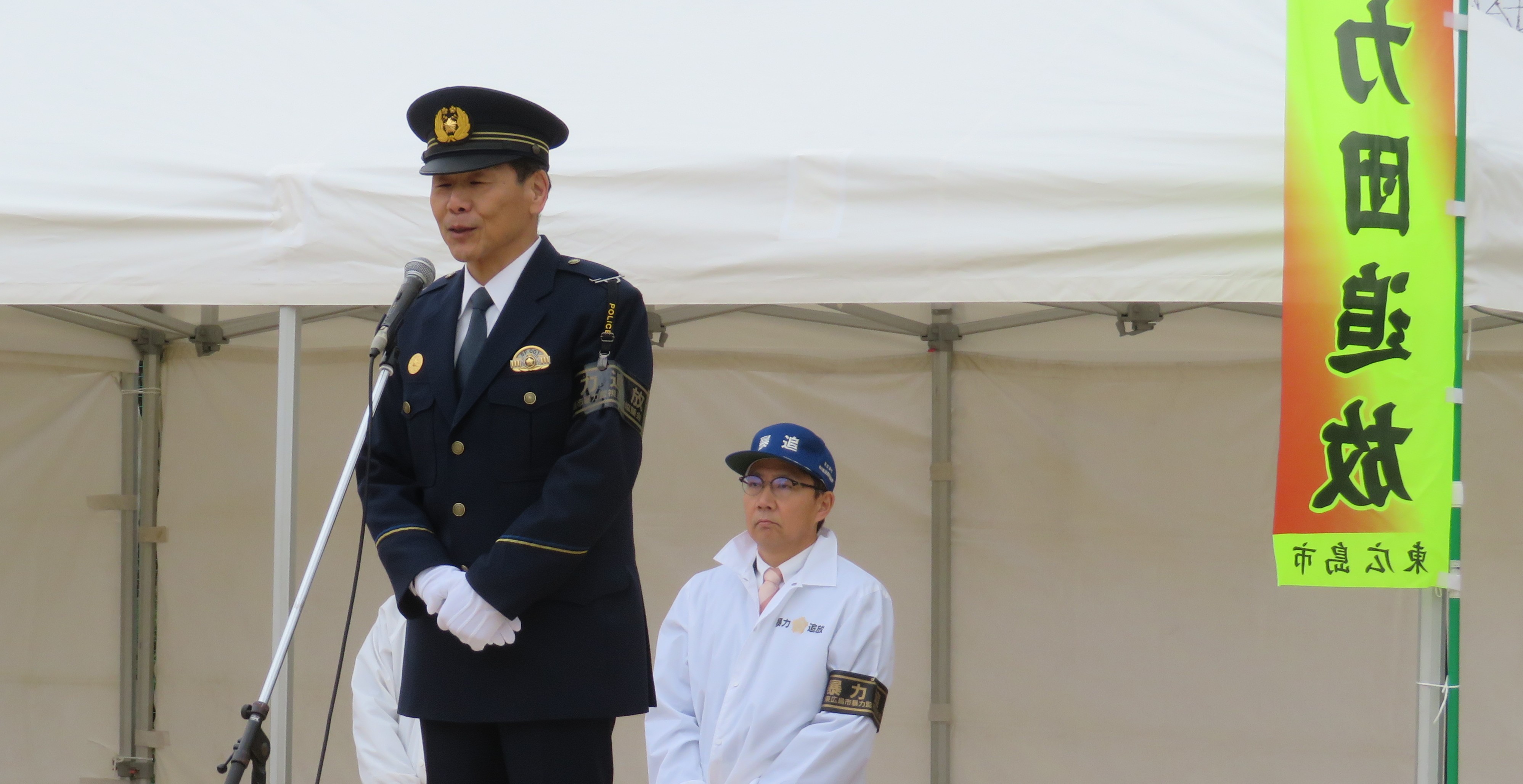 参加の東広島市防犯連合会、交通安全協会の方々他
