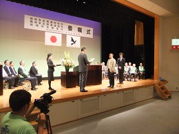 6月2日東広島市民文化センターアザレアホールにおいて「地域安全推進員等委嘱式」が行われました。この度委嘱を受けられた方は、地域安全推進指導員3名、職域安全推進連絡員2名、地域安全推進員229名の方々で、これからの任期2年間、東広島の防犯活動に対しご活躍頂くことになります。