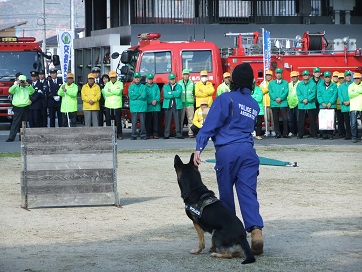 今回はアトラクションとして、警察犬の訓練風景が披露されました。迫力ある犯人捜査などを披露したのは、村上愛犬・警察犬訓練所のシェパード犬「トマホーク号」でした。