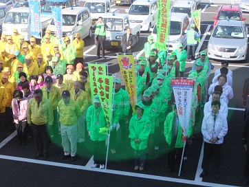 12月7日「年末交通事故防止・減らそう犯罪県民総ぐるみ運動東広島市出発式」が東広島市主催のもと東広島市消防局駐車場において関係団体から約180名が参加し執り行われた。