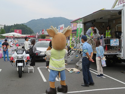 9月24日高屋イオンモール駐車場にてマックスバリューさんが行う「オータムフェス2017総力祭」のイベントに合わせ、東広島警察署、東広島交通安全協会、東広島市防犯連合会は「交通安全」「特殊詐欺被害防止」の啓発活動を行いました。防犯連合会は高屋支部の地域安全推進員8名にご協力いただき、特殊詐欺被害防止のチラシや被害防止について印刷されたミニタオル、クリーナークロスなど計400個を配布した。会場には広島県警の防犯マスコット「モシカ君」も参加し、皆さんとの啓発活動を頑張っていました。
