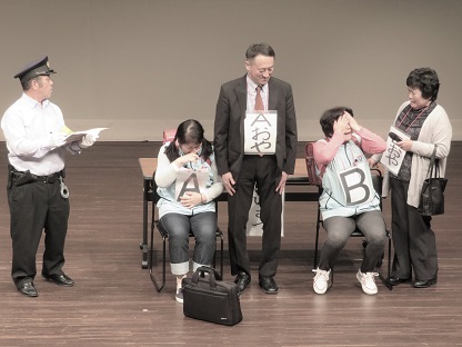少年補導協助員の皆さんにより寸劇(警察署にて保護者とともに指導される様子)