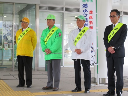 島本秀人交通安全協会会長、宮川孝央防犯連合会会長、水本洋一暴力監視追放協議会会長、久保一史金融機関防犯組合組合長