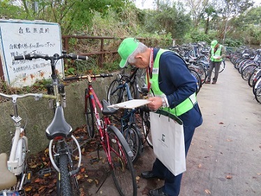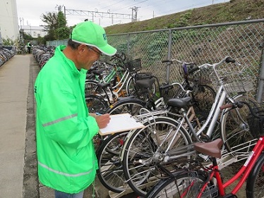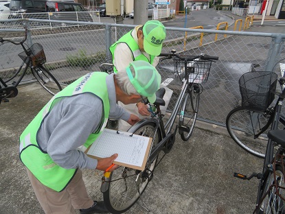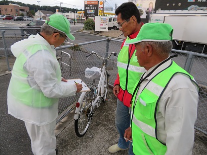 自転車施錠実態調査を行う高屋支部地域安全推進員