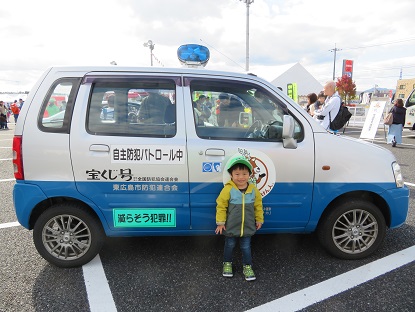 11月3日 東広島市消防局広場において「2018 消防・防災フェア―」が開催され多くの市民6500人が来場した。東広島市防犯連合会も交通安全協会、暴力監視追放協議会、東広島市、東広島警察署からなる「東広島市安全・安心調整会議」のメンバーとして共同ブースに展示に参加した。ちびっ子たちに大人気の警察パトカー、青色回転灯パトカー、ミニ白バイなども併設する共同ブースには多くの参加者が訪れ、防犯グッズ、チラシなどを入れた500袋は午前中にはなくなる盛況ぶりであった。