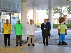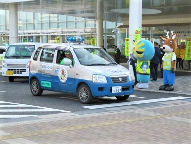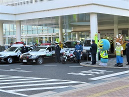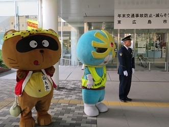 その後、ゆめタウン東広島店に移動し、買い物客に「交通安全」「特殊詐欺被害防止」の呼びかけが行われました。