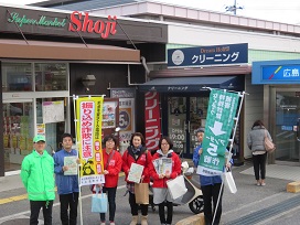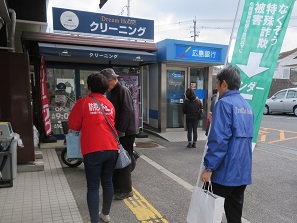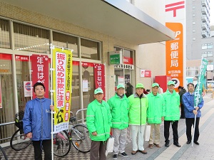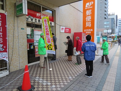12月14日、安芸西条郵便局前とショージ八本松南店前において防犯ボランティアの方<東西条地区地域安全推進員、八本松防犯パトロール隊員>と東広島市防犯連合会、東広島市危機管理課並びに東広島警察署により「特殊詐欺被害撲滅」啓発活動を行った。