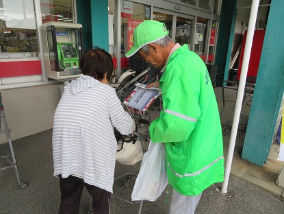 ゆめタウン黒瀬ンン店前にて地域の防犯ボランティア