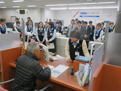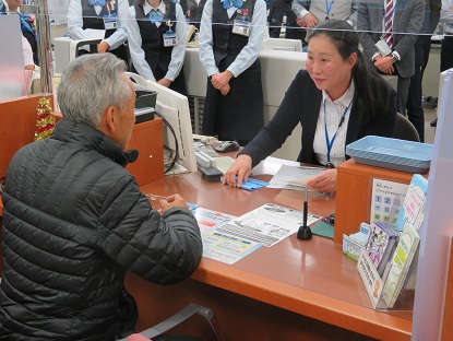広島県内の特殊詐欺被害を「年間5億円以下に!」の目標のもと広島県警は関係機関に協力を呼びかけ「アンダー5作戦」を展開中であるが、10月末現在、県内の特殊詐欺被害額は2億3000万円を超えた状況にある。昨年の同月被害額が3億3000万円越えであったことから対策は一定の効果をもたらしているといえる。しかしながら、私たち東広島の状況は昨年10月末被害額が約2200万円であったものが令和元年の10月末累計額が約4000万円と被害増大の大変厳しい状況にある。こうした中、東広島警察署は広島銀行西条支店において特殊詐欺被害に対応した窓口阻止訓練を行った。防犯連合会からは、被害者役として東西条地区の地域安全推進員が参加。ストーリーは犯人からの電話で「あなたは、ある投資話物件で名義貸ししている。名義貸しは犯罪だ。しかし、取引実績をつくれば大丈夫だ。そのため500万円の送金実績をつくるように」と言葉巧みに言われ、その話を真に受け、且つ犯人のアドバイスで、「銀行窓口では息子の家のローンの援助と子供たちへの生前財産分与のためと言うように」を忠実に守って、窓口で500万円を出金しようとする。お客様役の真に迫る演技のもと、窓口行員の方並びにその上司の方が冷静にかつマニュアルに沿ったお客様対応、警察への通報を行い一連の訓練を終えた。また、合わせて銀行強盗訓練が「犯人役(警察官)がお客役(行員)を人質に取り現金を持ち去る」という想定のもと実戦さながらの迫力で行われた。最後に東広島警察署生活安全課の警察官から良かった点、更に気をつけていただきたい点等の講評、並びに西条支店次長様の総括が行われ、行員の方々の今後の実践に向けた確認がなされた。