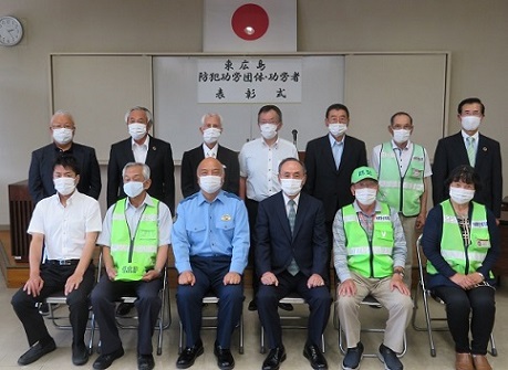 ◯東広島警察署長並びに東広島市防犯連合会会長連名による防犯功労表彰が1団体、11名。