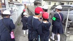 当日は、大垣校長先生の開催趣旨説明、地域安全マップ作りを通じての児童の防犯力の育成の必要性などのお話があり、続いて県民活動課綾主査から、児童に対し事前学習が行われた。その後78名は10班2グループに分かれ1グループは御薗宇地域センター方面に、1グループは小学校近隣に分かれ、それぞれの班ごとに約1時間のフィールドワークが行われた。フィールドワークが終わると早速学校に戻り「地域安全マップ」を作成、その後、1グループのみではあったが、発表があり午前中の行事を終了させた。半日ではやや時間的にタイトであり、後日学校側のみでのマップの仕上げが予定されている。