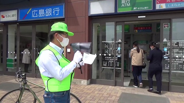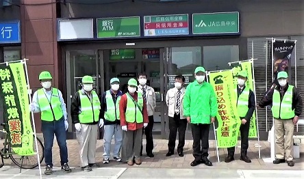 4月15日、フジグラン東広島店において、東広島警察署・東広島市・東広島市防犯連合会は地域の防犯ボランティアの方々とともに「特殊詐欺義被害撲滅」啓発活動を行いました。