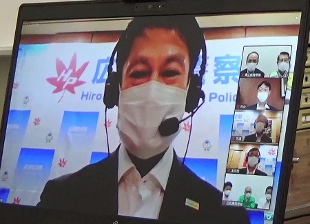 10月11日から20日の全国地域安全運動における広島県の決起会が、コロナ禍にあることから「オンライン」で開催された。県警本部と各警察署、県庁がオンラインで結ばれ、各警察署管内の防犯ボランティアの代表が参加する形で行われた。