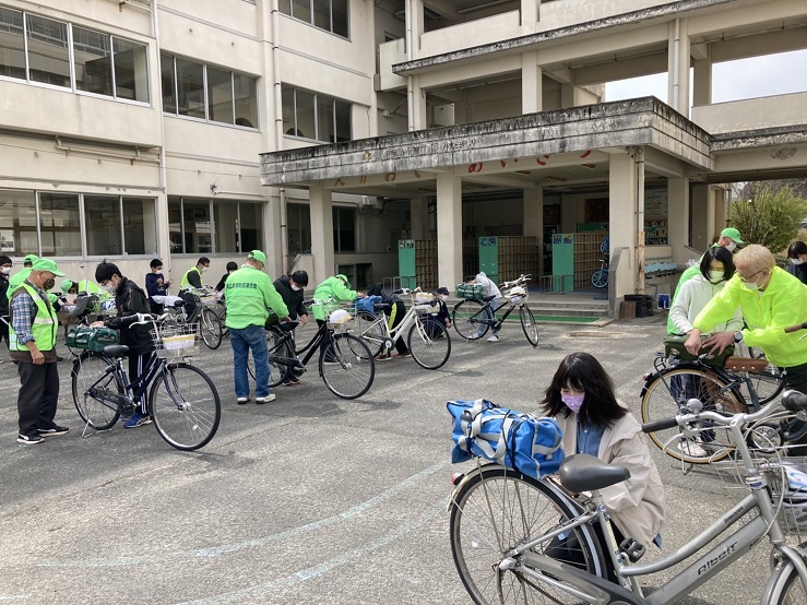 3月28日、地域の方々(原住民自治協議会、原小学校子どもを見守り隊、PTA、地域センターの皆さん)が協力して、この度原小学校を卒業した児童を対象に自転車交通安全教室を開催されました。