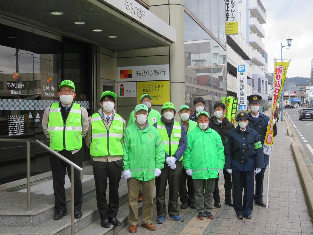 もみじ銀行西条支店前にて協力防犯ボランティアの方々他