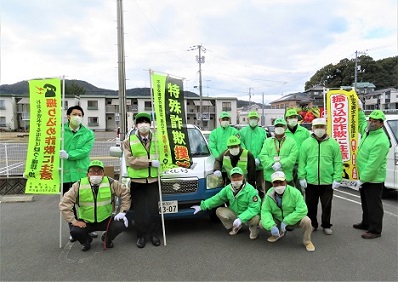 2月15日、安芸津町内のスーパー藤三において、町内の防犯ボランティアの方々、警察、市役所とともに、「特殊詐欺被害撲滅キャンペーン」を行いました。