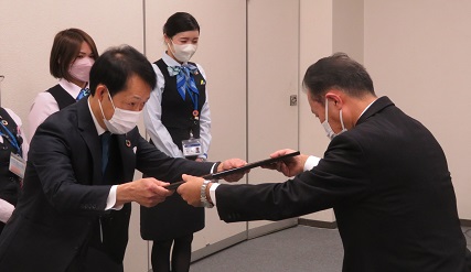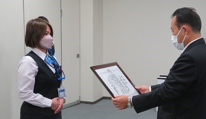 東広島警察署は特殊詐欺被害を未然に防いだ功労に対し、広島銀行西条支店並びに防止を行った3名の行員の方に対し感謝状を贈呈した。