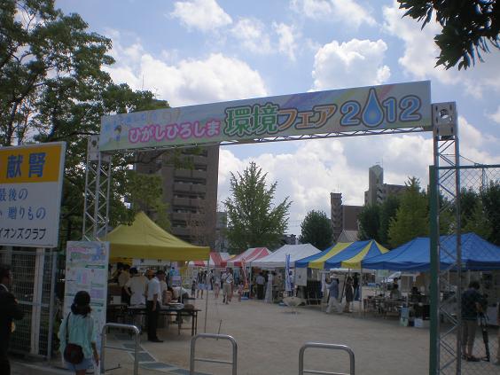 7月29日ひがしひろしま環境フェア2012が東広島中央公園並びに中央学習センターにおいて開催され、多くの市民、特に子ども達が参加し、環境保全についての行政、企業、ボランティアの動向を勉強していました。