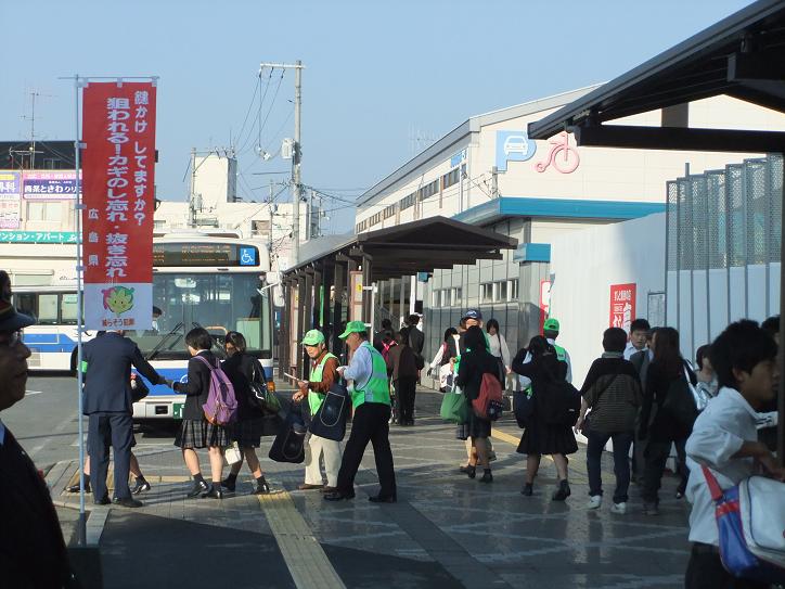 10月11日、地域安全運動期間(11日〜20日)の初日の早朝よりJR西条駅前で、東広島市防犯連合会のボランティアの皆さん、東広島警察の方、東広島市の方、更には西条駅長さんにより、主に自転車の「ツーロック」の呼びかけを行いました。配布したチラシをPDFで添付していますのでご覧下さい。