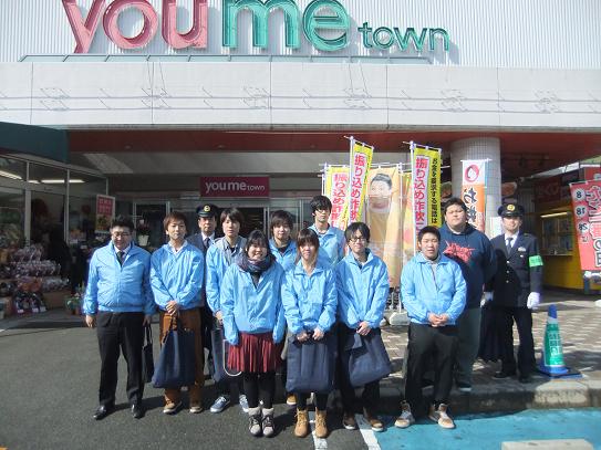 東広島警察署員の他、防犯連合会の地域安全推進員等6名と共に、ゆめタウン黒瀬店では広島国際大学ボランティア隊12名の応援を戴きました。