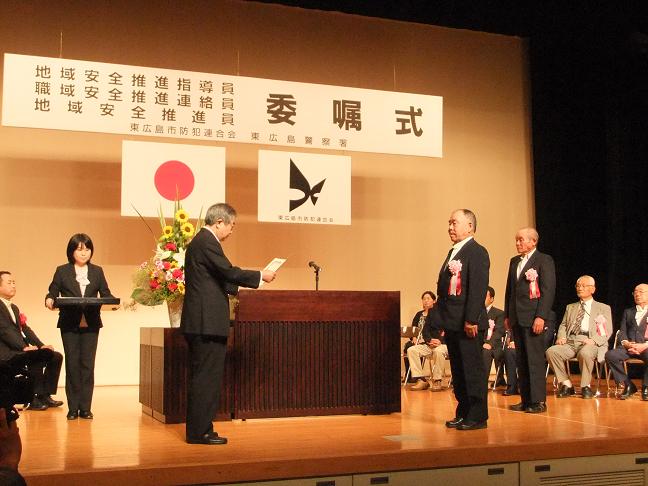 6月1日(土)地域安全推進員等の委嘱式が、東広島市文化センターアザレアホールにて開催されました。