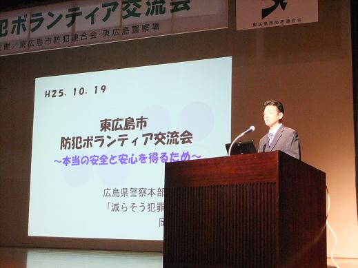 10月19日、東広島市市民文化センター アザレアホールにおいて「防犯ボランティア交流会」を東広島市防犯連合会と東広島警察署主催により開催致しました。