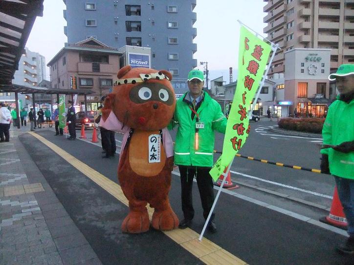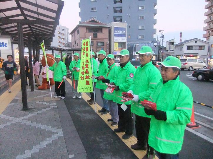 西条駅前で啓発活動する地域安全推進員