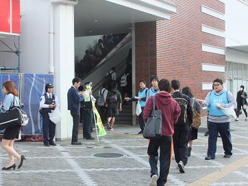 西条駅前でチラシを配る広島国際大学の学生ボランティアの皆さん(2)