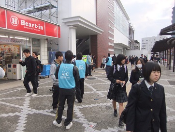 西条駅前でチラシを配る広島国際大学の学生ボランティアの皆さん(1)