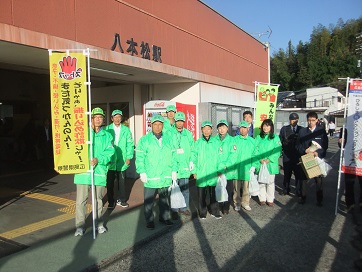 八本駅前にて啓発活動の皆さん